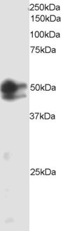 Western Blot Approx 45kDa and 50kDa bands observed in lysates of cell line HeLa, and approx. 50kDa band in Mouse Testis lysates (calculated MWt of 52.3kDa according to Human NP_005892.1 and Mouse NP_001239410.1) Recommended concentration