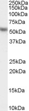 Western Blot Approx 55kDa band observed in lysates of cell line HeLa (calculated MW of 57.9kDa according to NP_002257.1). Recommended for use at 0.03-0.1µg/ml