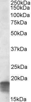 Western Blot Approx 19kDa band observed in Human Brain (Cerebellum) lysates (calculated MW of 12.8kDa according to NP_001036096.1). Recommended concentration