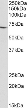 | Western Blot | Approx 70kDa band observed in lysates of cell line Jurkat and NIH3T3, and in Mouse and Rat Heart and Kidney lysates. Approx. 65kDa observed in Pig Heart lysates (calculated MW of 66.9kDa according to Human NP_004199.1 and 66.8kDa according |