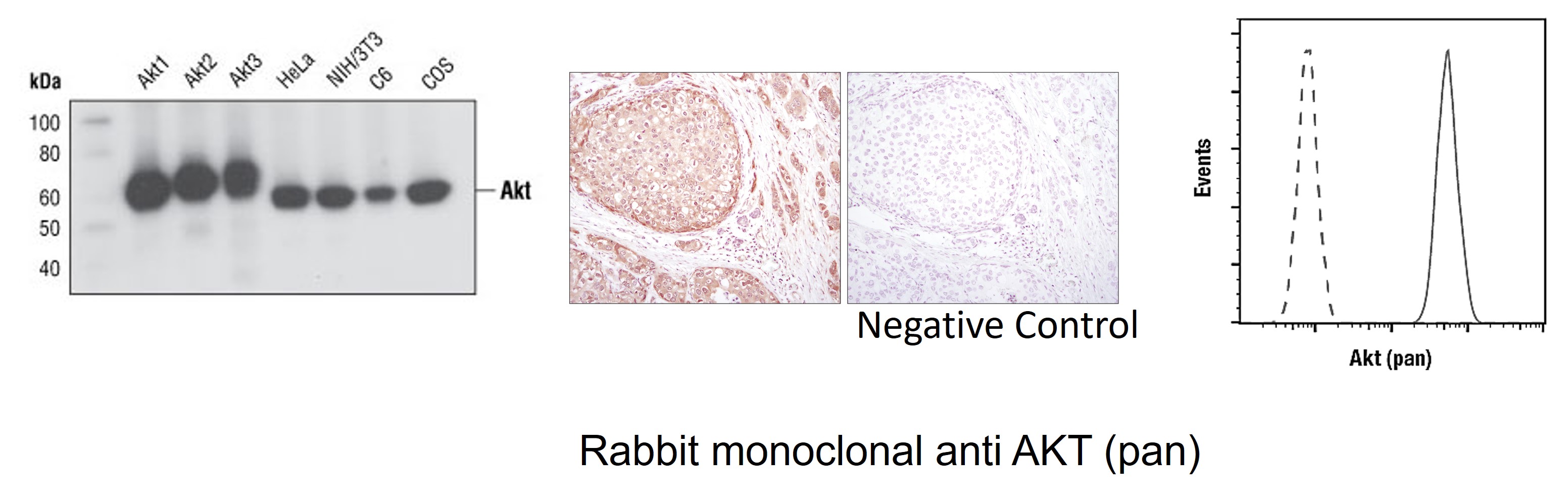 Specificity Akt (pan) Rabbit mAb detects endogenous levels of total Akt protein. This antibody does not cross-react with other related proteins.