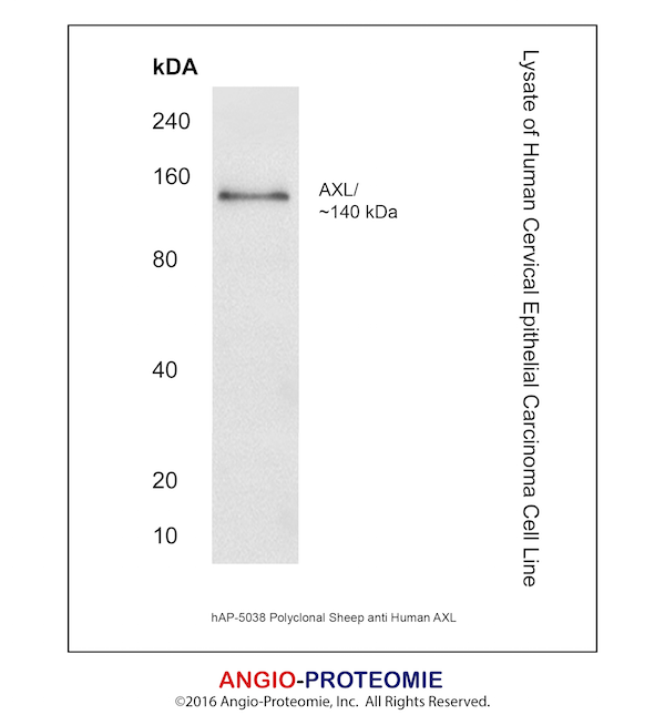 Preparation This antibody was produced from a sheep immunized with purified human AXL protein.