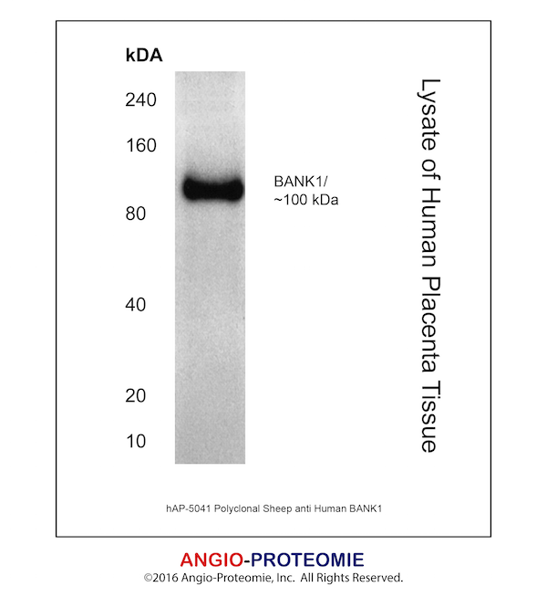 Preparation This antibody was produced from a sheep immunized with purified human BANK1 protein.