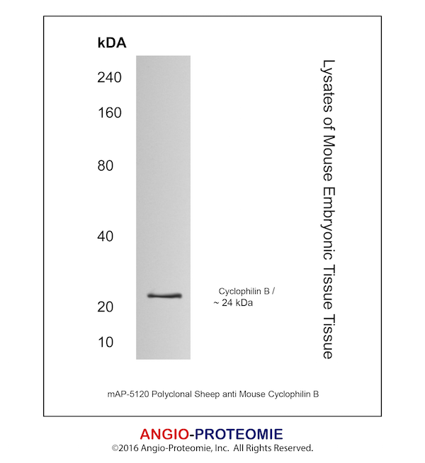 Preparation This antibody was produced from a sheep immunized with purified mouse Cyclophilin B protein.