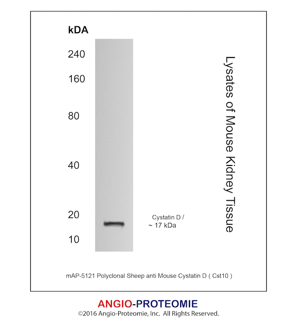 Preparation This antibody was produced from a sheep immunized with purified mouse Cystatin D/Cst10 protein