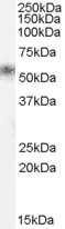 | Western Blot | Approx 55kDa band observed in Human Kidney, Pancreas and Skin lysates (calculated MW of 28.9kDa according to NP_002248.1). The observed molecular weight corresponds to earlier findings in literature with different antibodies (Gao et al Nat |