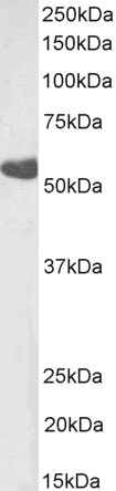 Western Blot Approx 55kDa band observed in Human Lung and Placenta lysates (calculated MW of 44.2kDa according to NP_963998.2). The observed molecular weight corresponds to the glycosylated form. Recommended concentration