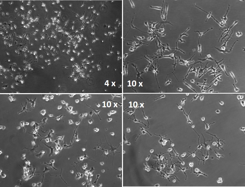 | Microglia, one of the glial cell types in the CNS, is an important integral component of neuroglial cell network. They have been observed in the brain parenchyma from the early stage of development to the mature state. Microglia act as brain macrophages when programmed cell death occurs during brain development or when the CNS is injured or pathologically damaged. Microglia can be considered as the main cell in brain immune surveillance, can present antigens in the molecular context of MHC class II expression to CD-4 positive T cells, are capable of Fc mediated phagocytosis, and share many common antigens with hemopoietic and tissue macrophages. Furthermore, there is accumulating evidence that microglia are involved in a variety of physiological and pathological processes in the brain by interacting with neurons and other glial cells and through the production of biologically active substances such as growth factors, cytokines, and other factors. Human brain microglia cells (HBMgs, cAP-0040) are isolated from healthy human brain tissue. hTert-HBMgs have been cultured/passaged for more than 10 passages after infected with hTert-lentiviral particles under Special Formulated Microglial Cell Growth Medium (MgGM, cAP-37B). |
