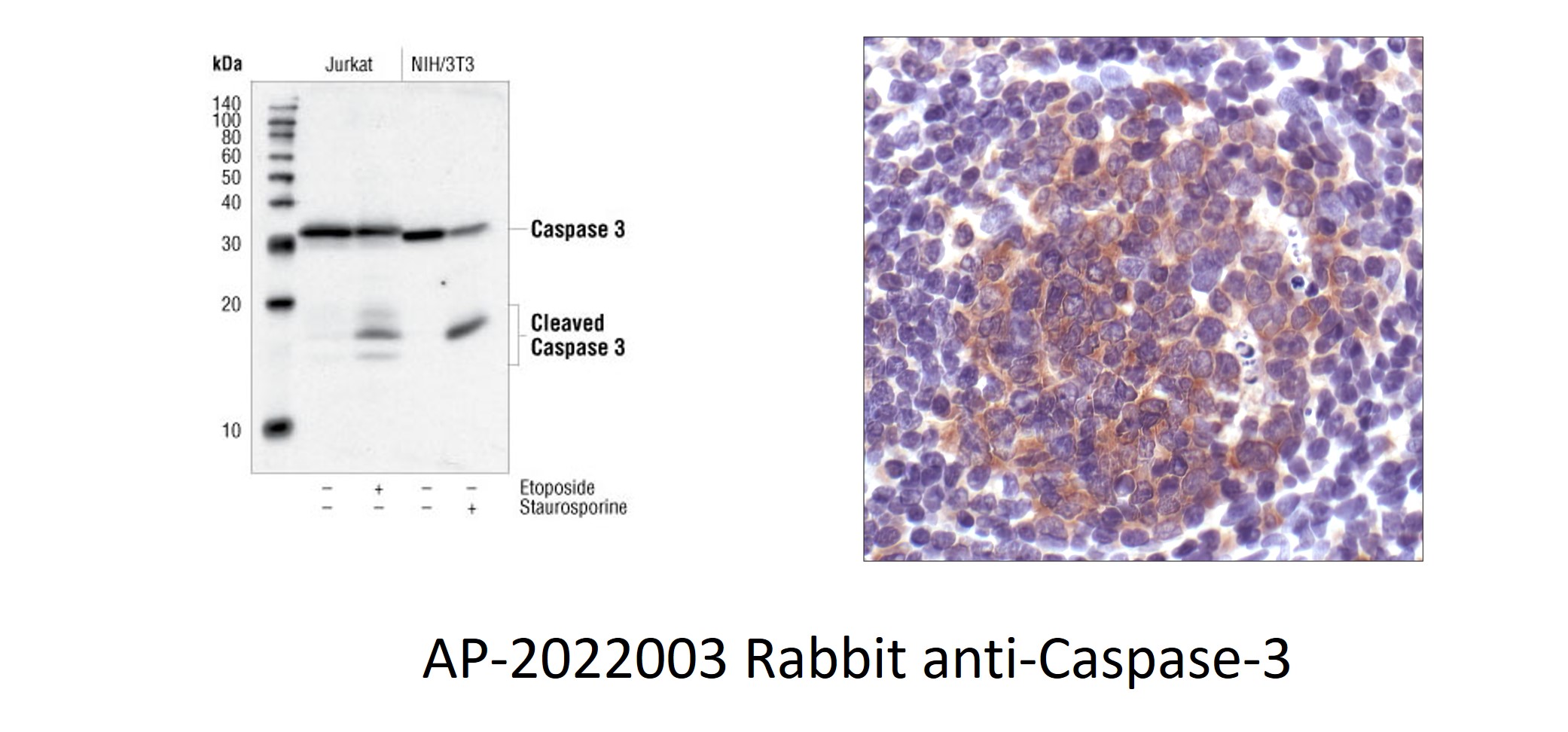 Specificity | Caspase-3 Antibody detects endogenous levels of full-length caspase-3 (35 kDa) and the large fragment of caspase-3 resulting from cleavage (17 kDa). |