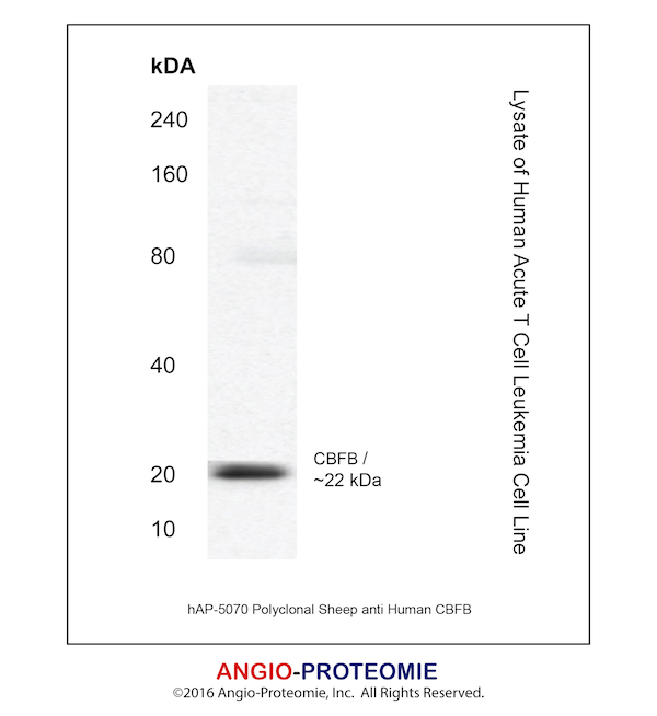 Preparation This antibody was produced from a sheep immunized with purified human CBFB protein