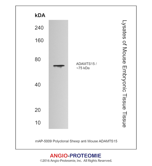 Preparation This antibody was produced from a sheep immunized with purified mouse ADAMTS15 protein.