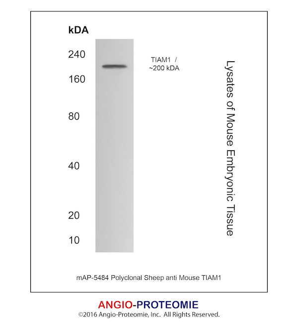 Preparation This antibody was produced from a sheep immunized with purified mouse TIAM1 protein