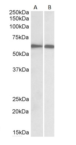 | Western Blot | Approx 60kDa band observed in Human Spleen and Peripheral Blood Lymphocytes lysates.The calculated molecular size is 57.8kDa according to NP_001092099.1. Recommended concentration |
