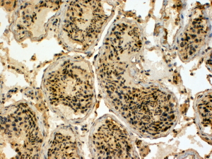Immunohistochemistry In paraffin embedded Human Testis shows nuclear staining in all germ cells. Recommended concentration