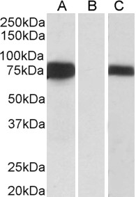Western Blot In transfected HEK293 transiently expressing full-length Human FOXC1 (myc and DYKDDDDK tagged), a band of approx. 75kDa was observed. No bands were observed in mock-transfected and the same band was observed using anti-DYKDDDDK tag antibody