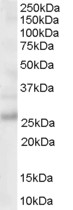 | Western Blot | Approx 26kDa band observed in Human Brain lysates (calculated MW of 25.4kDa according to NP_001008229, isoform a3). Recommended concentration |