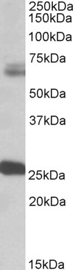 Purification Purified from goat serum by ammonium sulphate precipitation followed by antigen affinity chromatography using the immunizing peptide.