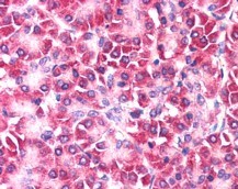 Immunohistochemistry In paraffin embedded Human Pancreas shows strong staining in cytoplasm in select acinar cells. Recommended concentration, 5-10µg/ml.