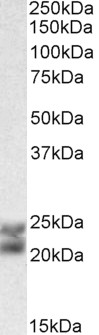 Western Blot Approx 24+22kDa band observed in Human Spleen lysates. These bands correspond to earlier findings in literature with different antibodies (Wiechen et al Am J Pathol. 2001 Mar;158(3)