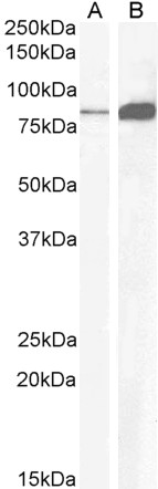 | Western Blot | Approx 80kDa band observed in Mouse Pancreas and Rat Stomach lysates (calculated MW of 49.2kDa according to Mouse NP_031653.1and 49.0kDa according to Rat NP_037297.1). The observed molecular weight also corresponds to earlier findings in l |