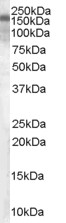Western Blot Approx 150kDa band observed in Human Brain lysates (calculated MW of 130kDa according to NP_000359.1). The observed molecular weight corresponds to earlier findings in literature with different antibodies (Miloloza et al Hum Mol Genet. 2000