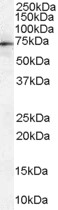 Western Blot Approx 70kDa band observed in Human and Mouse Spleen lysates (calculated MW of 67.8kDa according to NP_002435.1). Recommended concentration