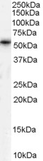 Western Blot Approx 50-55kDa band observed in Human Testis lysates (calculated MW of 60.2kDa according to NP_954869.1). Recommended concentration