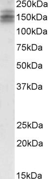 | Western Blot | Approx 170kDa band observed in Human Brain (Cerebellum) lysates (calculated MW of 174kDa according to NP_996770.1 ). Recommended concentration |