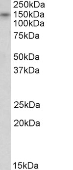 Western Blot Approx 150kDa band observed in Mouse and Rat Brain lysates (calculated MW of 192kDa according to Human NP_003938.1 and 191kDa according to Mouse NP_001157740.1). Recommended concentration