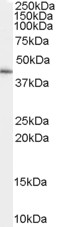 | Western Blot | Approx 40kDa band observed in lysates of liver cell line HepG2 (calculated MW of 41.3kDa according to NP_536721.1). Recommended concentration |