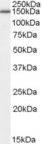 Western Blot Approx 150kDa band observed in Human Brain (Cerebellum and Hippocampus) lysates (calculated MW of 148kDa according to NP_071765.2). Recommended concentration