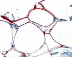 Immunohistochemistry In paraffin embedded Human Pancreas shows membranous and cytoplasm staining in adipocytes. Recommended concentration, 3-6µg/ml.