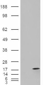 | Western Blot | A very strong approx 16kDa band observed in Human Duodenum lysates (calculated MW of 15.2kDa according to NP_000125.2). In transfected HEK293 transiently expressing FABP2 a band of approx 18kDa is observed. This band is not observed in the |