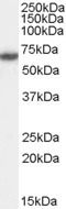 Western Blot Approx 70kDa band observed in lysates of cell line HeLa, and in nuclear lysates of cell line Jurkat (calculated MW of 68.6kDa according to NP_004620.1). In transfected HEK293 transiently expressing FANCG a band of approx. 65kDa is observed.