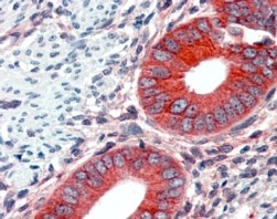 Immunohistochemistry In paraffin embedded Human Uterus shows membranous staining in endometrial cells. Recommended concentration, 2-5µg/ml.