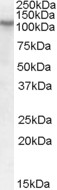 | Western Blot | Approx 110kDa band observed in Human Heart and Ileum lysates (calculated MW of 121kDa according to NP_150279.1). Recommended concentration |