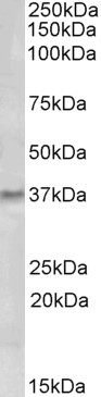 | Western Blot | Approx. 37kDa band observed in Human Tonsil lysates. Customer¿s experiments gave identical results in lysates of cell line HUVEC with antibodies raised against different parts of the same protein. (calculated MW of 27.9kDa according to NP_0 |
