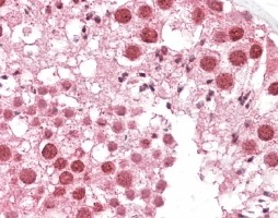| Immunohistochemistry | In paraffin embedded Human Testis shows nuclear staining in spermatocytes. Recommended concentration, 2.5-3.8µg/ml. |