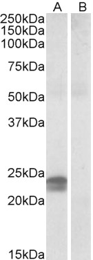 Western Blot Approx 24kDa band observed in Human Pancreas (calculated MW of 11.7kDa/10.7kDa according to NP_665906.1; NP_002122.1). The observed molecular weight corresponds to earlier findings with different antibodies from other commercial sources. T