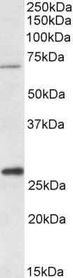 Purification Purified from goat serum by ammonium sulphate precipitation followed by antigen affinity chromatography using the immunizing peptide.