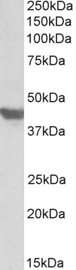 Western Blot Approx 45kDa band observed in Mouse and Rat Heart lysates (calculated MW of 54.8kDa according to Human NP_001033.1 and Mouse NP_033230.2). The observed molecular weight corresponds to earlier findings in literature with different antibodies