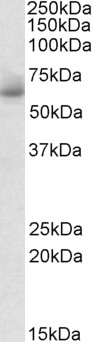 | Western Blot | Approx 60kDa band observed in Human Testis lysates (calculated MW of 53.2kDa according to NP_057405.1). The observed molecular weight corresponds to earlier findings in literature with different antibodies (Liu et al, J Biol Chem. 2000 Aug |