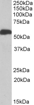 Western Blot Approx 55kDa band observed in Human Liver lysates (calculated MW of 58.7kDa according to NP_733936.1). Recommended concentration
