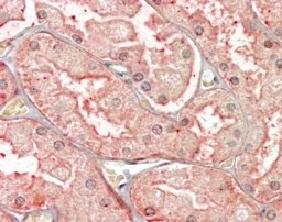 | Immunohistochemistry | In paraffin embedded Human Kidney shows vesicular staining in epithelial cells of PCT. Recommended concentration, 3-6µg/ml. |