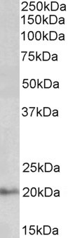 | Western Blot | Approx 20kDa band observed in Human Kidney, Skeletal Muscle and Pancreas lysates (calculated MW of 19.5kDa according to NP_077324.1). In addition, a 25kDa band is observed in both Mouse and Rat Skeletal Muscle lysates accompanied by an 18k |