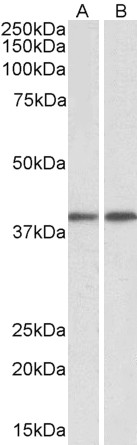Western Blot Approx 40kDa band observed in Human, Mouse and Rat Testis lysates, in Pig Colon and Spleen lysates and in lysates of Human Peripheral Blood Mononucleocytes (calculated MW of 42.1kDa according to Human NP_002063.2 and to Rat NP_112298.1 ). R