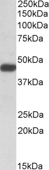 Western Blot Approx 45kDa band observed in lysates of cell line Jurkat (calculated MW of 41.8kDa according to NP_057260.2). Recommended concentration
