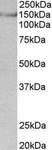 Western Blot Approx 150kDa band observed in Mouse Brain lysates (calculated MW of 148kDa according to Human NP_006763.2 and Mouse XP_990642.3). Recommended concentration