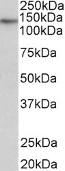 Western Blot Approx 140kDa band observed in Human Heart and Skeletal Muscle lysates (calculated MW of 127kDa according to NP_937983.2). Recommended concentration