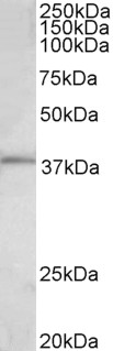 Western Blot Approx 37kDa band observed in lysates of cell line HeLa (calculated MW of 40.7kDa according to NP_005243.1). Recommended concentration